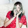 妇女在镜子房间里,怎样了...